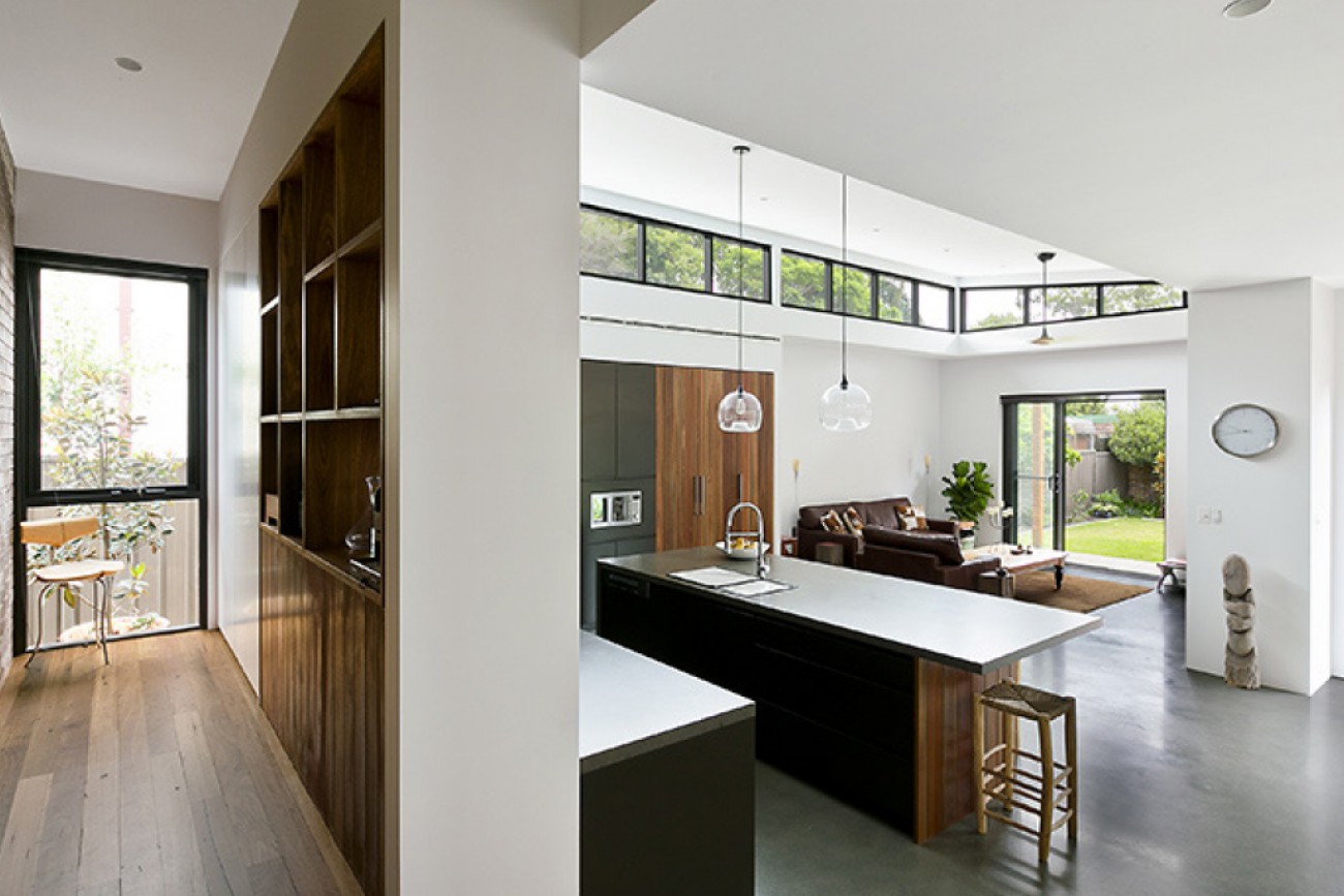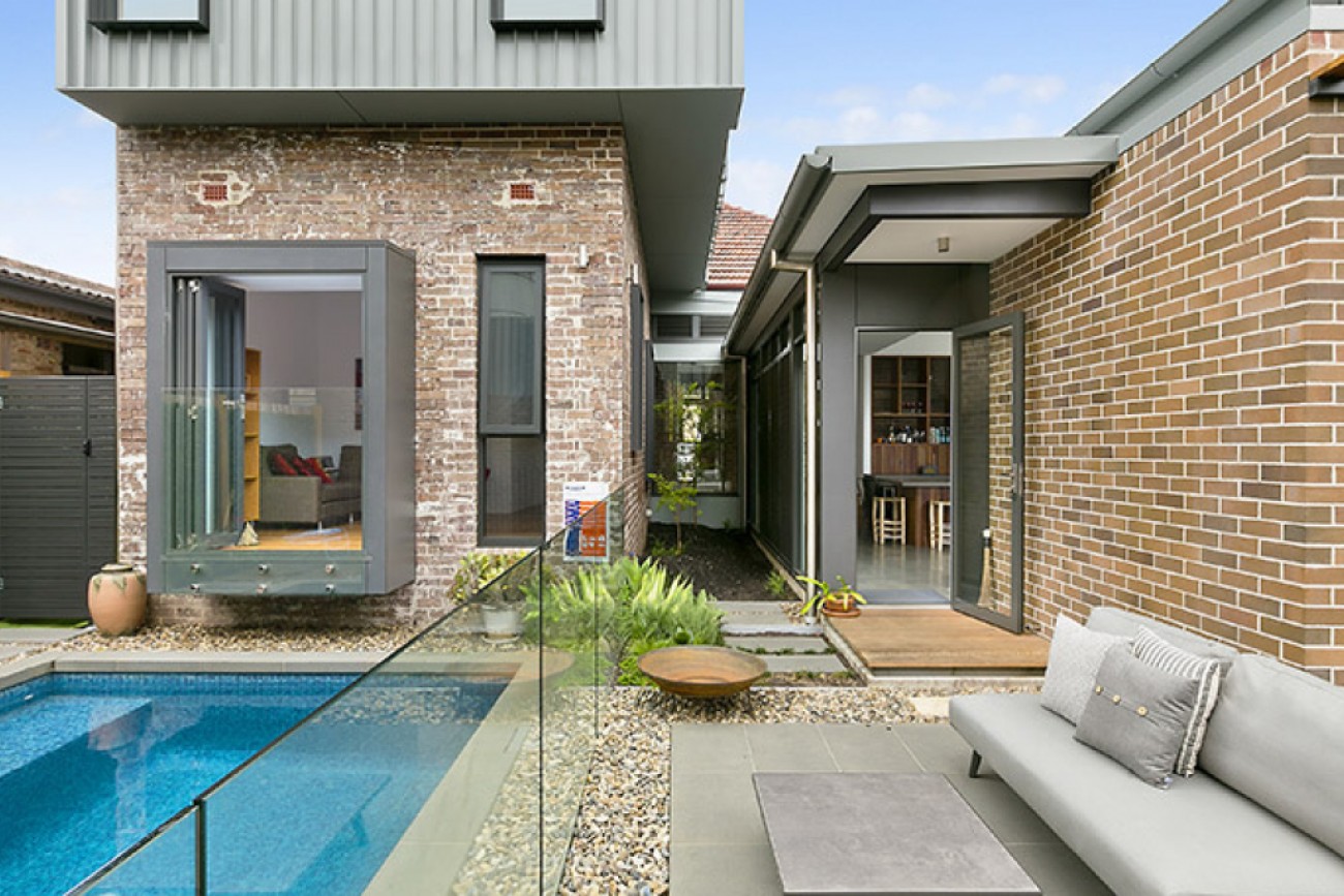 1 bedroom a kitchen, laundry, study, bathroom and pool were added to this beautiful 100 year old federation home, minimalist detailing, recycled Blackbutt, burnish concrete floors, longline roofing combine to make this award winning addition one of our favourite builds.